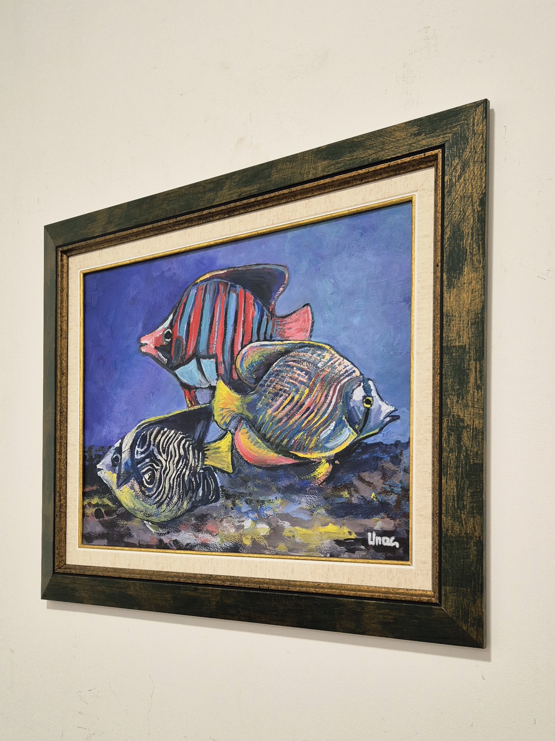 Dragan Mladenovic Unac -ulje na lesonitu-53×43- Ribe