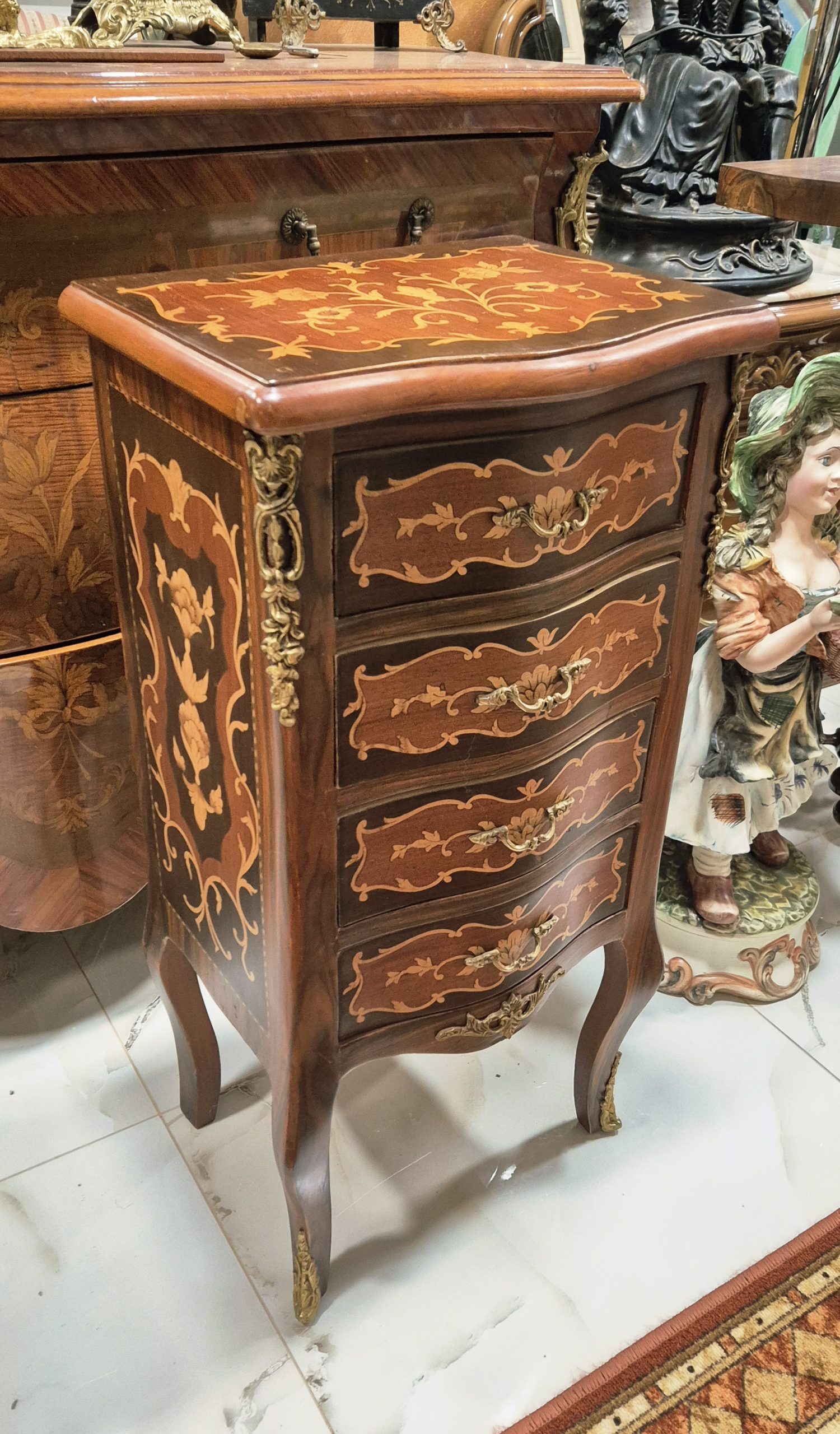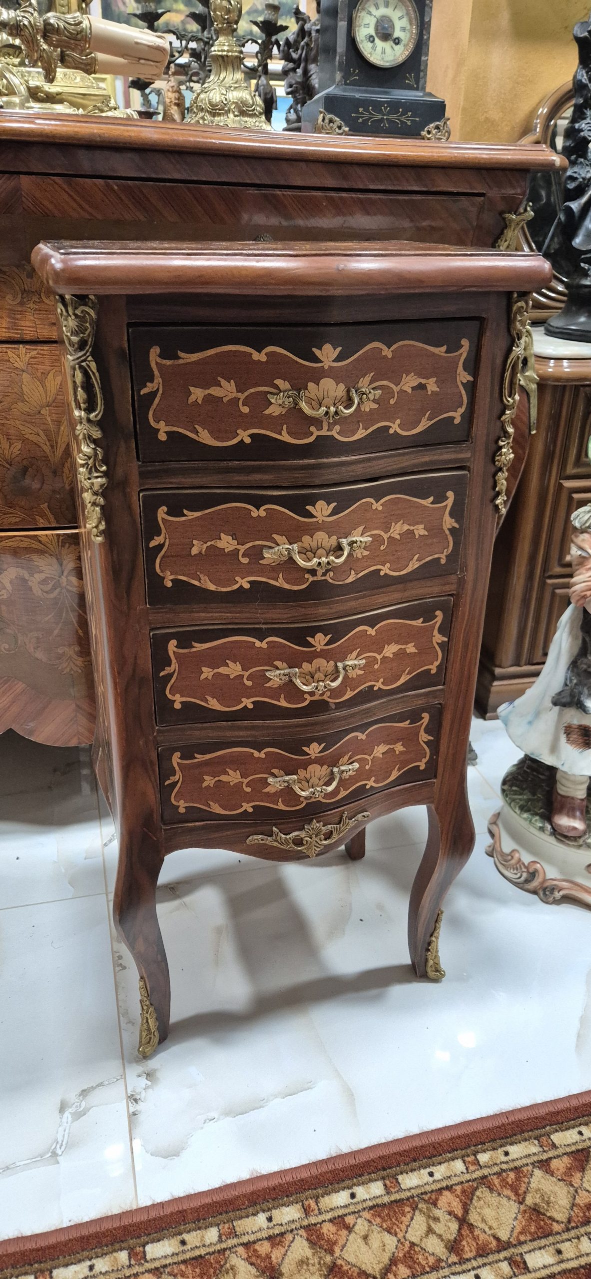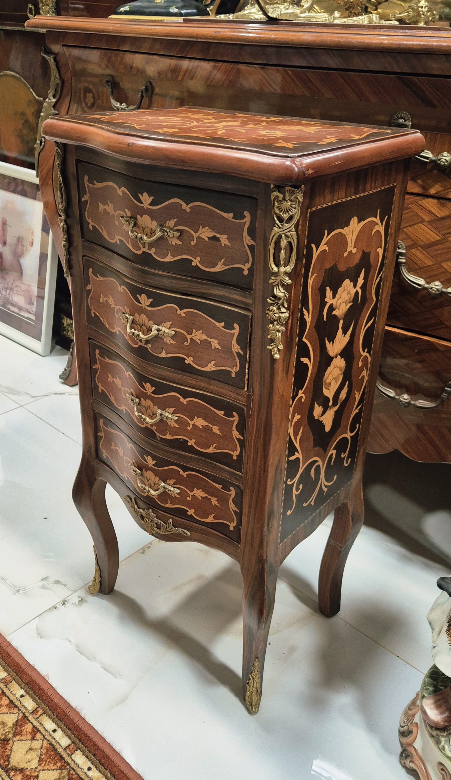 Vrhunska stara komodica sa 4 fijoka u intarziji – Luj XV stil