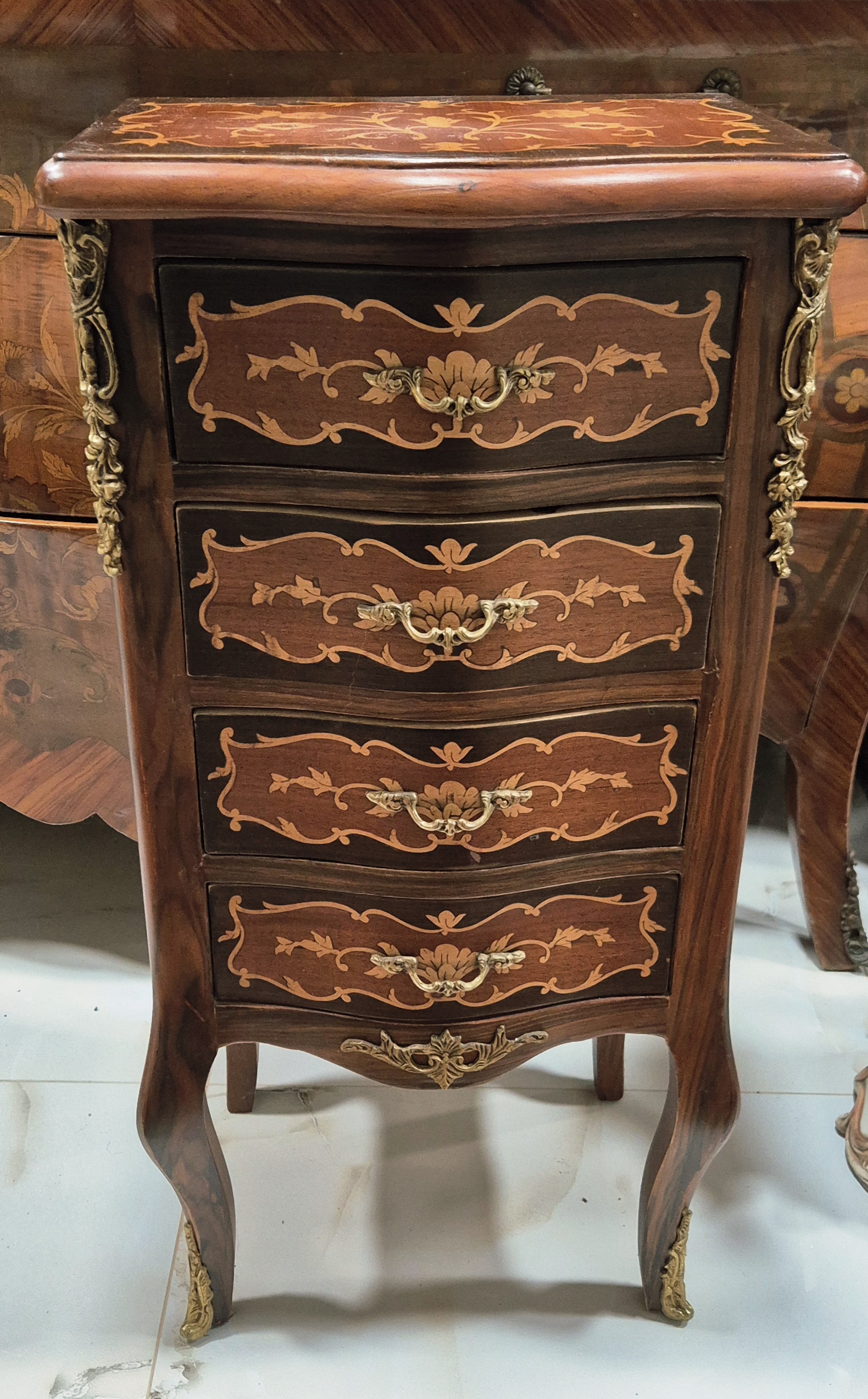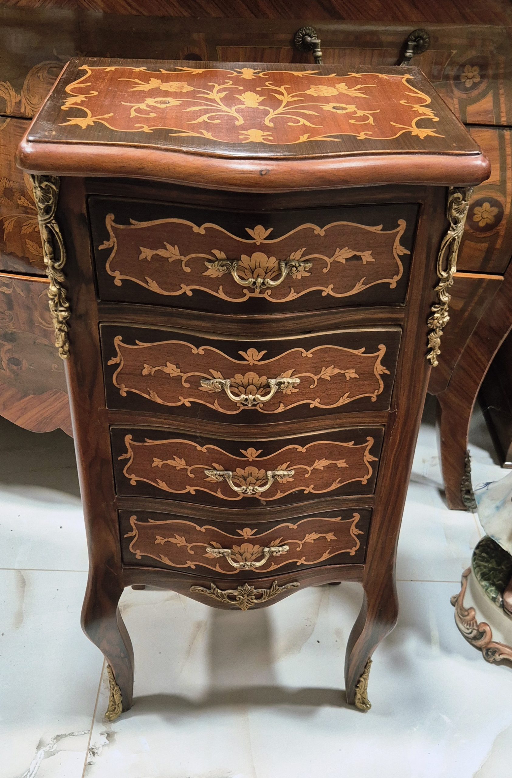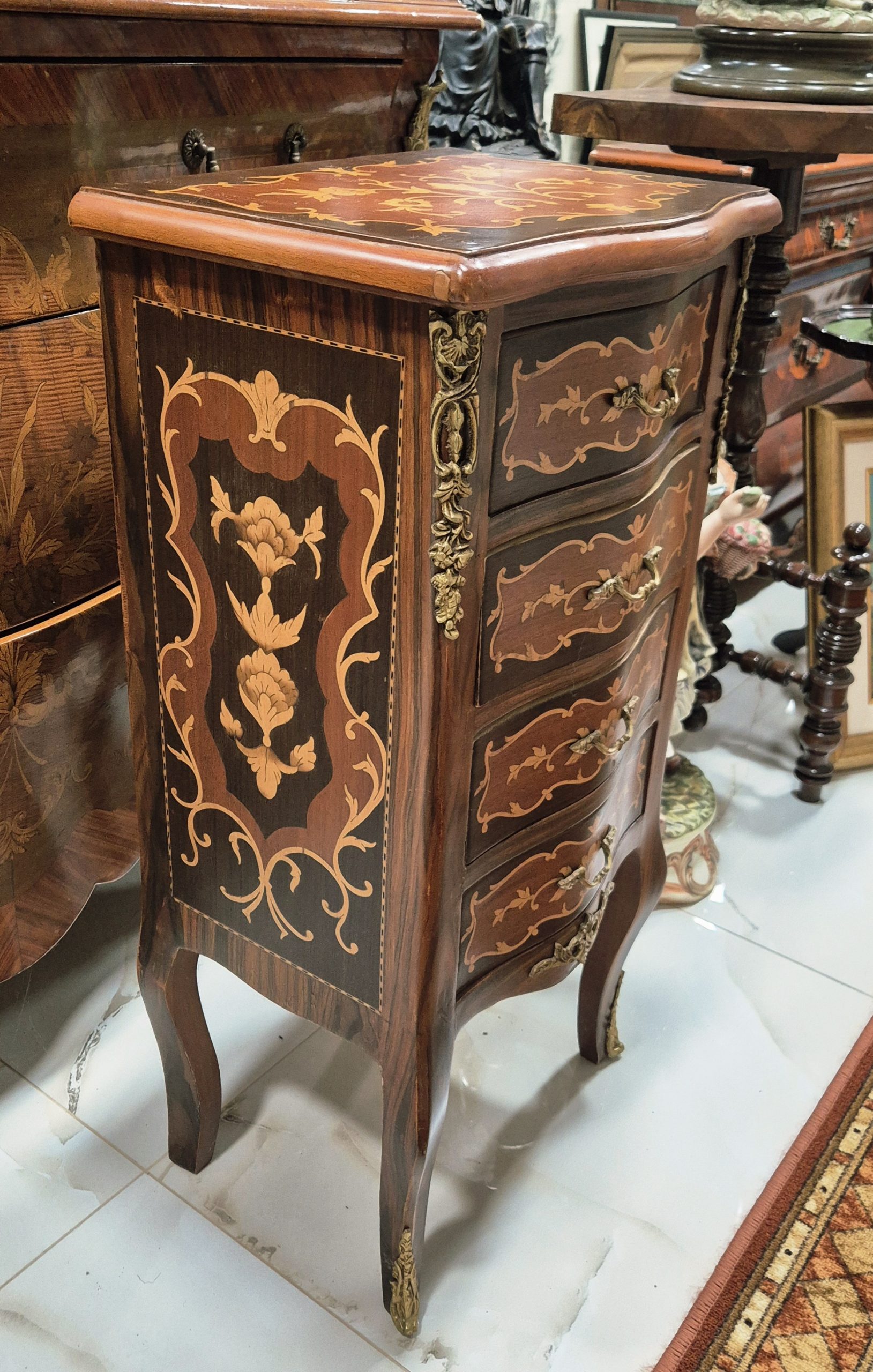 Vrhunska stara komodica sa 4 fijoka u intarziji – Luj XV stil